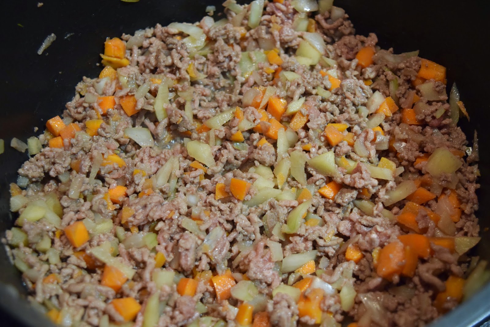 Peel the potato and cut it in cubes with the carrots and onions. Heat the cooking oil, add the carrots, onions, potatoes, mince meat thyme and seasoning. Add a bit of water and stir till the meat is all brown.